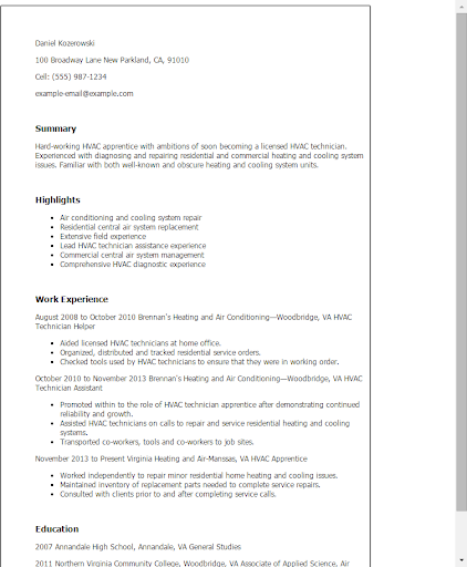 How to write an hvac tech resume that gets more interviews. Position yourself for the best hvac technician jobs by making sure your hvac technician resume fully conveys the scope of your skills and training. Complete guide to write a professional resume for a hvac resume example better than 9 out of 10 others. Land the best job interviews on the market with the best cv templates available. If you want to perfect your cv, you might have to grease up your elbows, get your reading glasses, and make sure every little detail is polished to perfection.